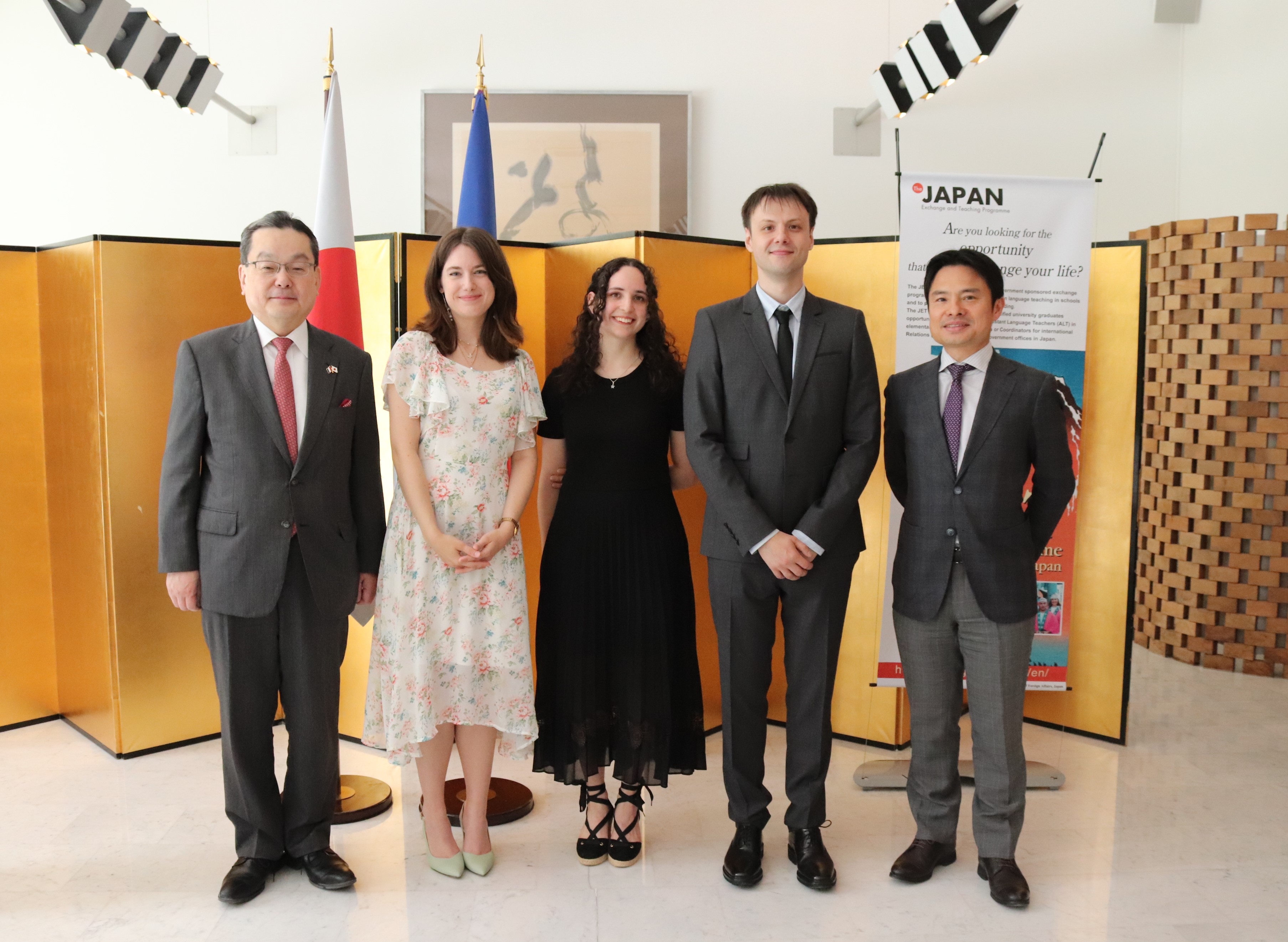 Louis ANGLIONIN, Lola BOKOBZA, Karine GRAN et Angélique MAGISTRELLO sont les jeunes Français sélectionnés cette année pour assurer les fonctions de coordinateurs pour les relations internationales au sein de quatre collectivités locales japonaises. M. ANGLIONIN et Mme MAGISTRELLO officieront dans le département d’Aichi, respectivement au conseil départemental et à la mairie de Toyota. Mmes BOKOBZA et GRAN seront quant à elles affectées à la mairie d’Asago et à la mairie de Toyooka du département de Hyogo.